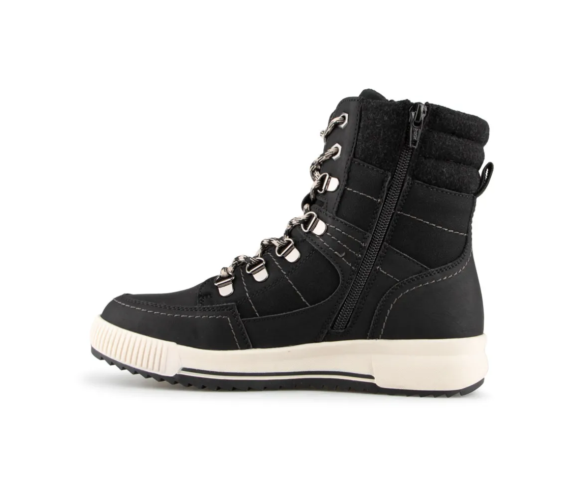 Les bottes d’hiver West Way pour femmes allient style et fonctionnalité. Conçues avec un laçage élégant et une fermeture éclair intérieure YKK, elles offrent un ajustement pratique et sécurisé. Fabriquées en cuir synthétique et feutre, elles sont dotées d’une doublure en imitation de laine pour une chaleur optimale. La semelle intérieure en feutre assure un confort tout au long de la journée, tandis que la semelle extérieure en TPR offre une excellente traction sur les surfaces glissantes.