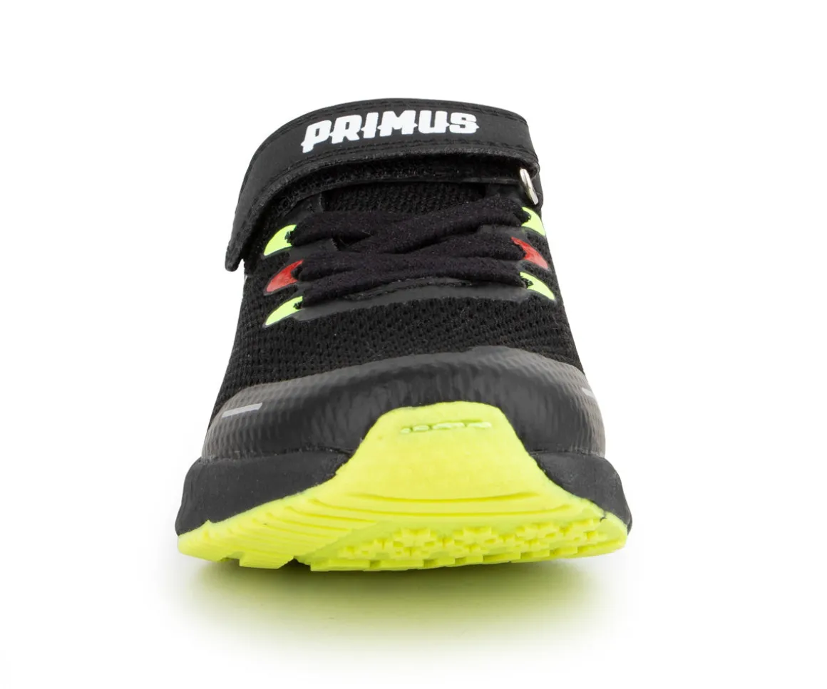 Chaussures multisports noire Primus pour enfant avec velcro sur le dessus et lacets élastiques.