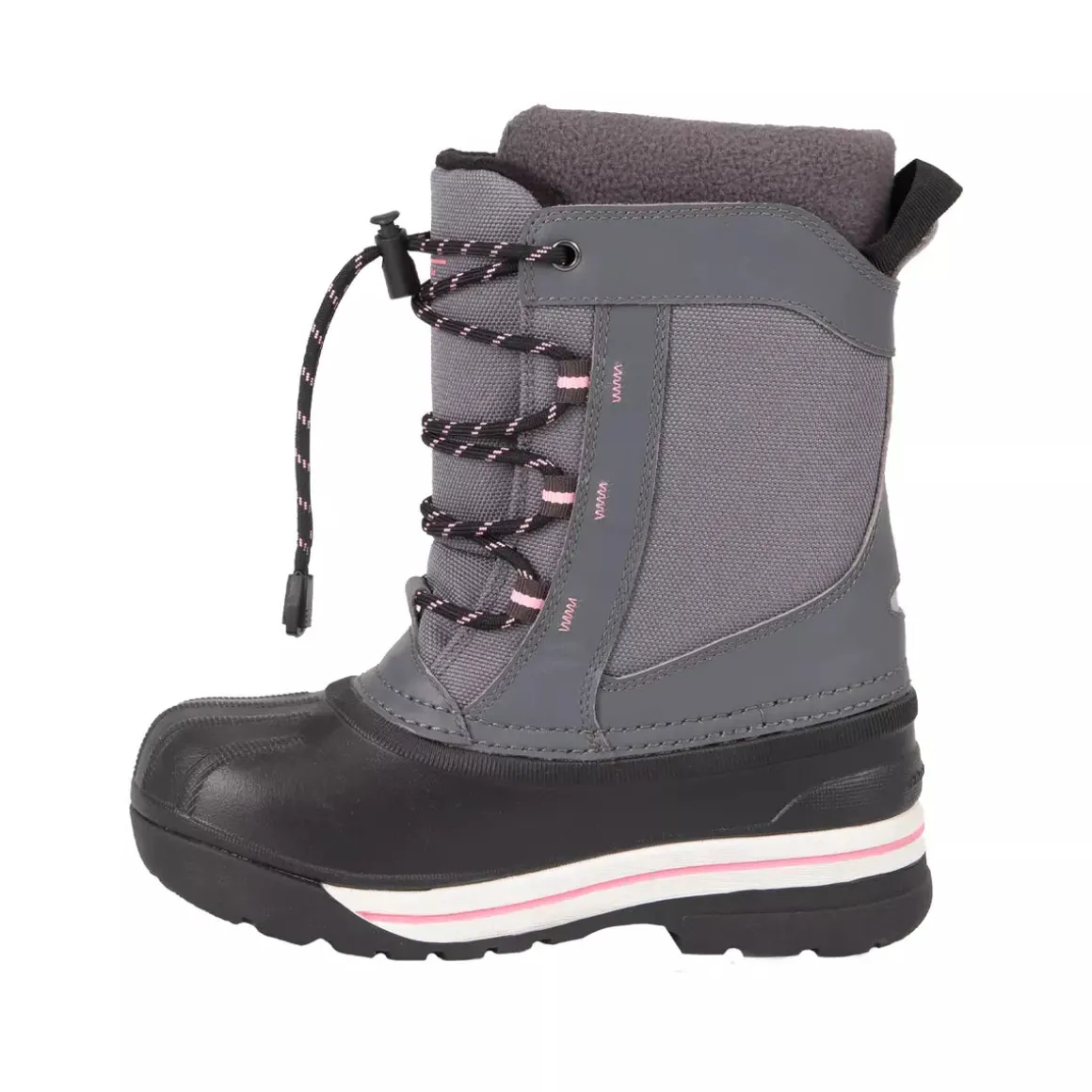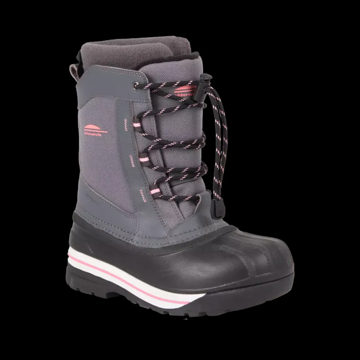 Botte d’hiver Chlorophylle pour filles fabriquée en nylon et cuir, offrant à la fois robustesse et confort. Dotée de lacets et d’un système de réglage pour un ajustement parfait, elle assure un maintien optimal. Sa semelle en caoutchouc Chloro-Grip garantit une excellente adhérence, tandis que la membrane Chloro-MaxDry offre une imperméabilité efficace et une protection contre le vent. Conçues pour résister aux froids extrêmes de -30°C à -50°C, ces bottes sont équipées de feutres amovibles dotés d’une membrane en aluminium qui reflète la chaleur, assurant ainsi un confort optimal tout au long de l’hiver.