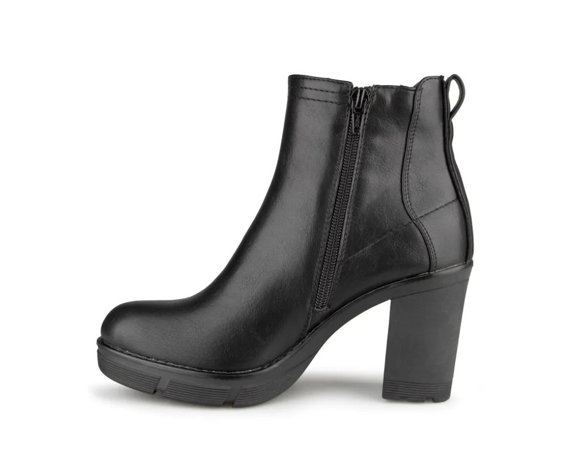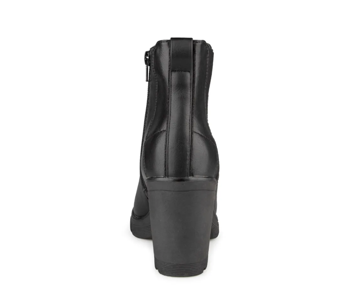 Botte courte Alberto pour femme avec un talon haut de 3.5 po et une empeigne élastique sur le côté extérieur. Que ce soit pour une soirée spéciale, une réunion professionnelle, ou une sortie avec des amis, ces bottes à talon haut ajoutent une touche d’élégance à toutes vos tenues.
