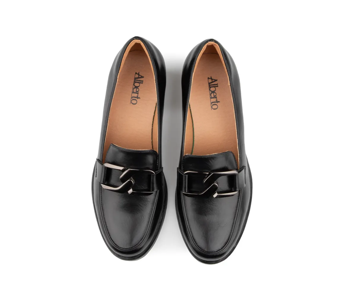 Le flâneur Alberto pour femme est un choix parfait pour celles qui recherchent un équilibre entre style et bien-être. Son design chic et classique en fait un incontournable de la garde-robe. Fabriqué en cuir synthétique avec une doublure assortie, il offre un confort optimal tout au long de la journée. Son talon compensé assure un bon amortissement, réduisant la fatigue lors de la marche, tandis que sa semelle extérieure en TPR garantit une adhérence et une durabilité accrues.