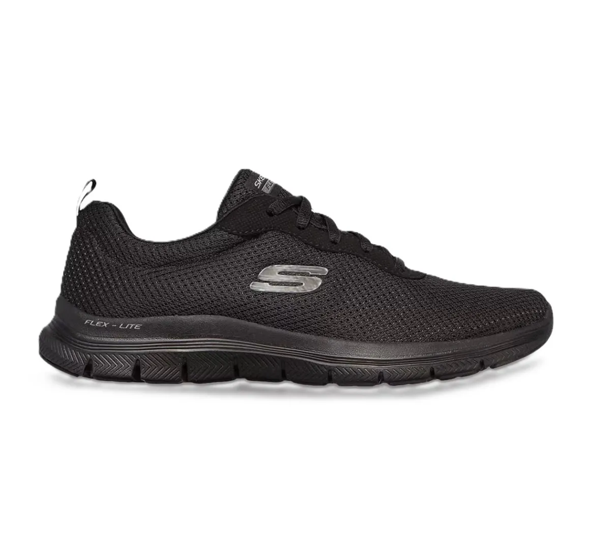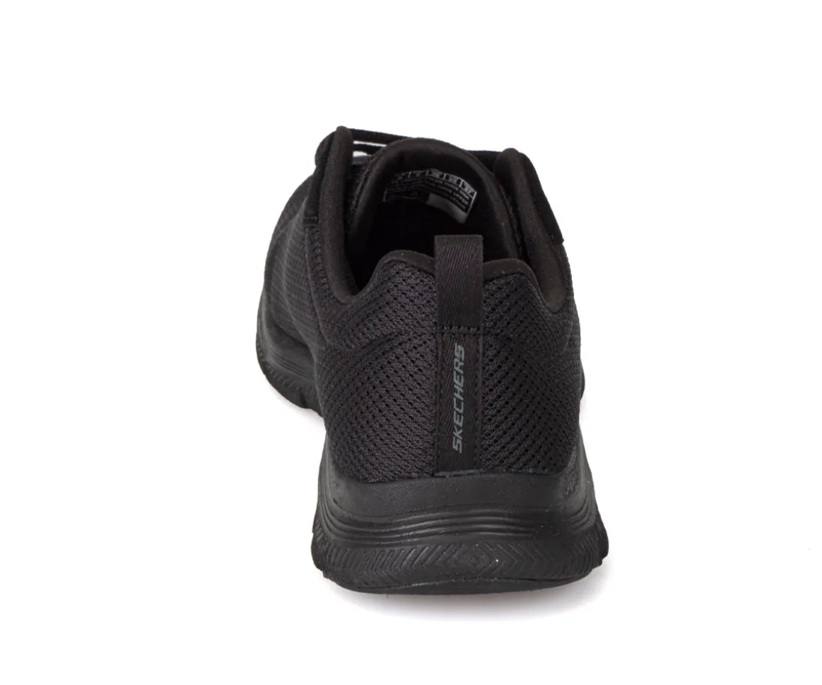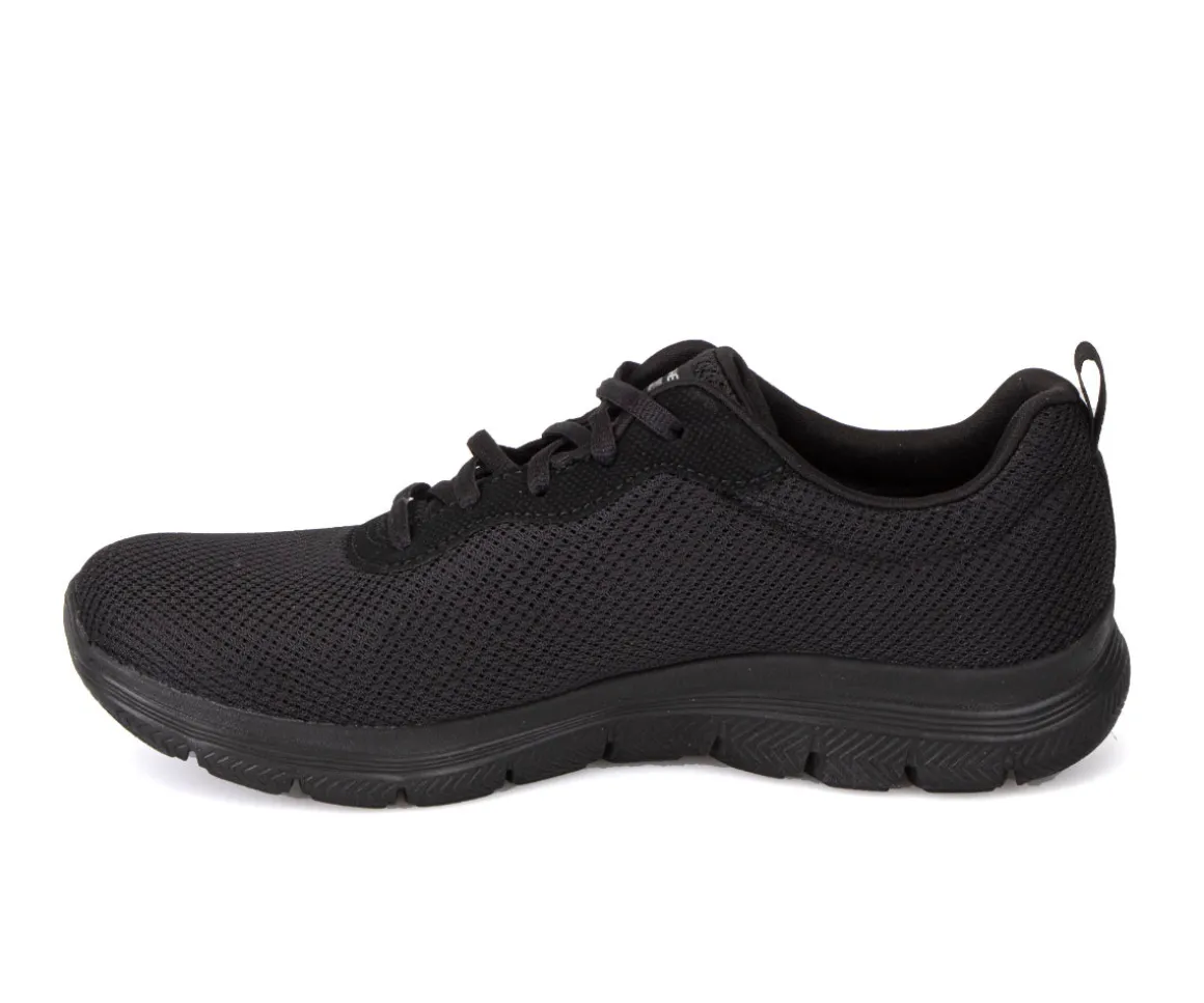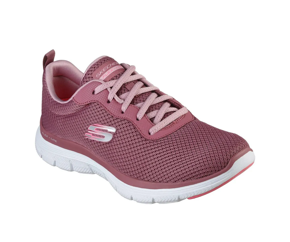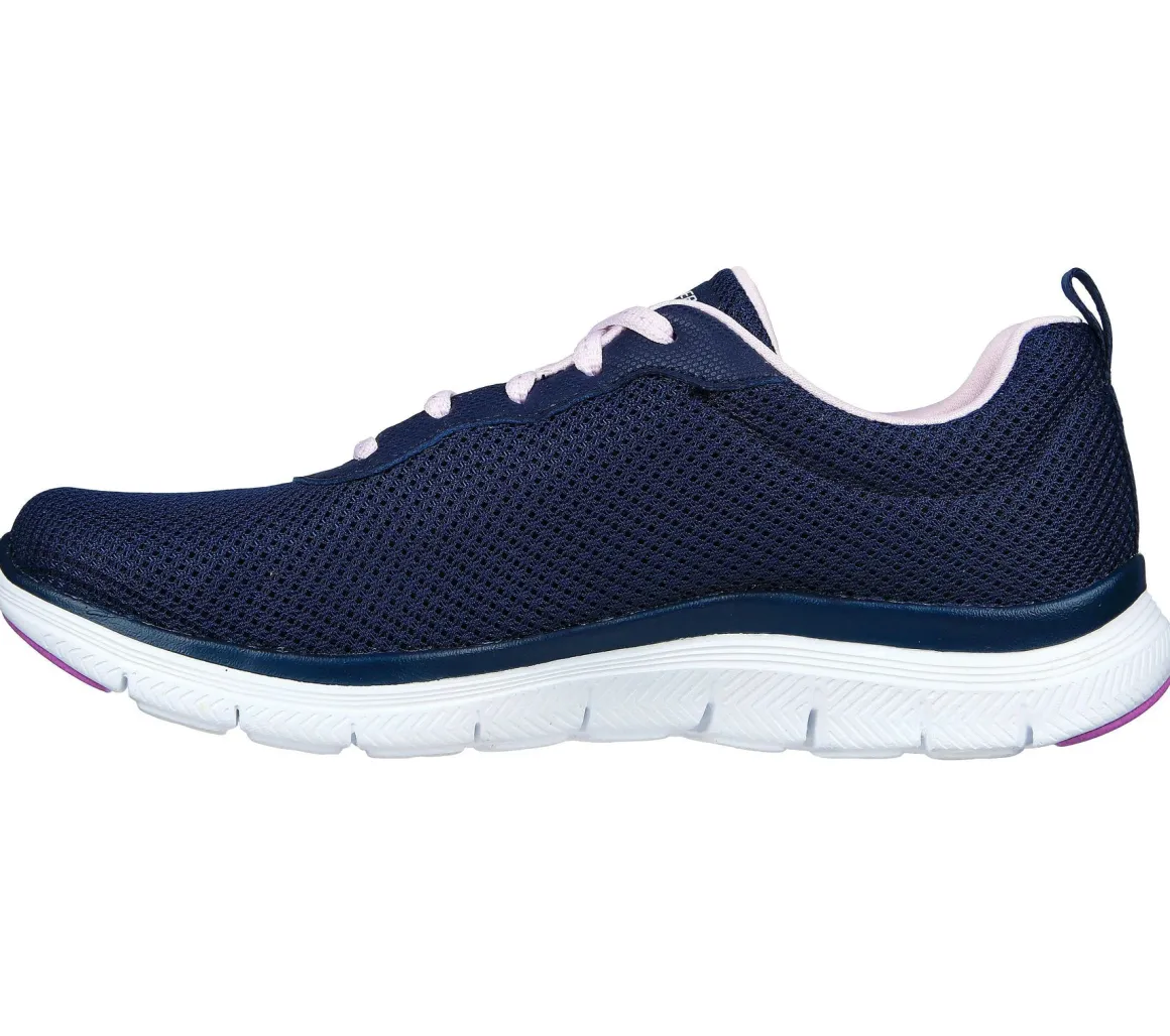 Ces chaussures athlétiques Flex Appeal 4.0 Skechers pour femmes sont lacées, avec une empeigne en tissu maillé et une semelle extérieure en EVA avec insertion de caoutchouc. Elles sont lavables en machine.