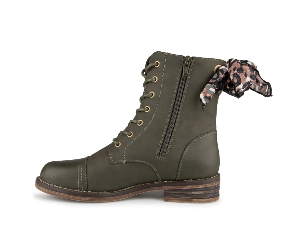 Bottillon Alberto pour femme lacé avec fermeture éclair intérieure et un foulard décoratif et amovible à l’arrière.