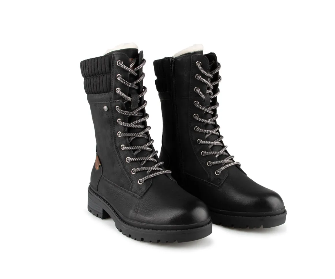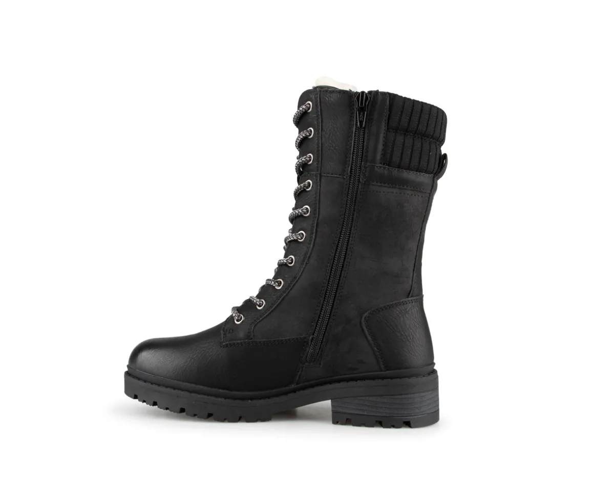 Ces bottes mi-mollet West Way pour femmes sont conçues pour allier style et confort, tout en étant fonctionnelles pour affronter les conditions hivernales. Munies d’un laçage et d’une fermeture éclair intérieure, elles offrent un ajustement pratique et sécurisé. La tige en cuir synthétique est doublée à 50 % de laine pour une chaleur optimale, tandis que la semelle intérieure en feutre assure un excellent amortissement. La semelle extérieure en caoutchouc avec artic grip garantit une adhérence solide sur les surfaces glissantes.