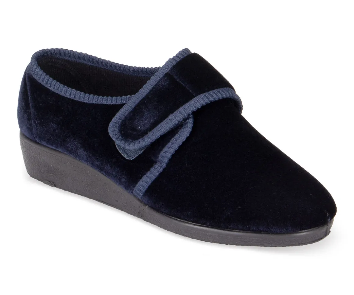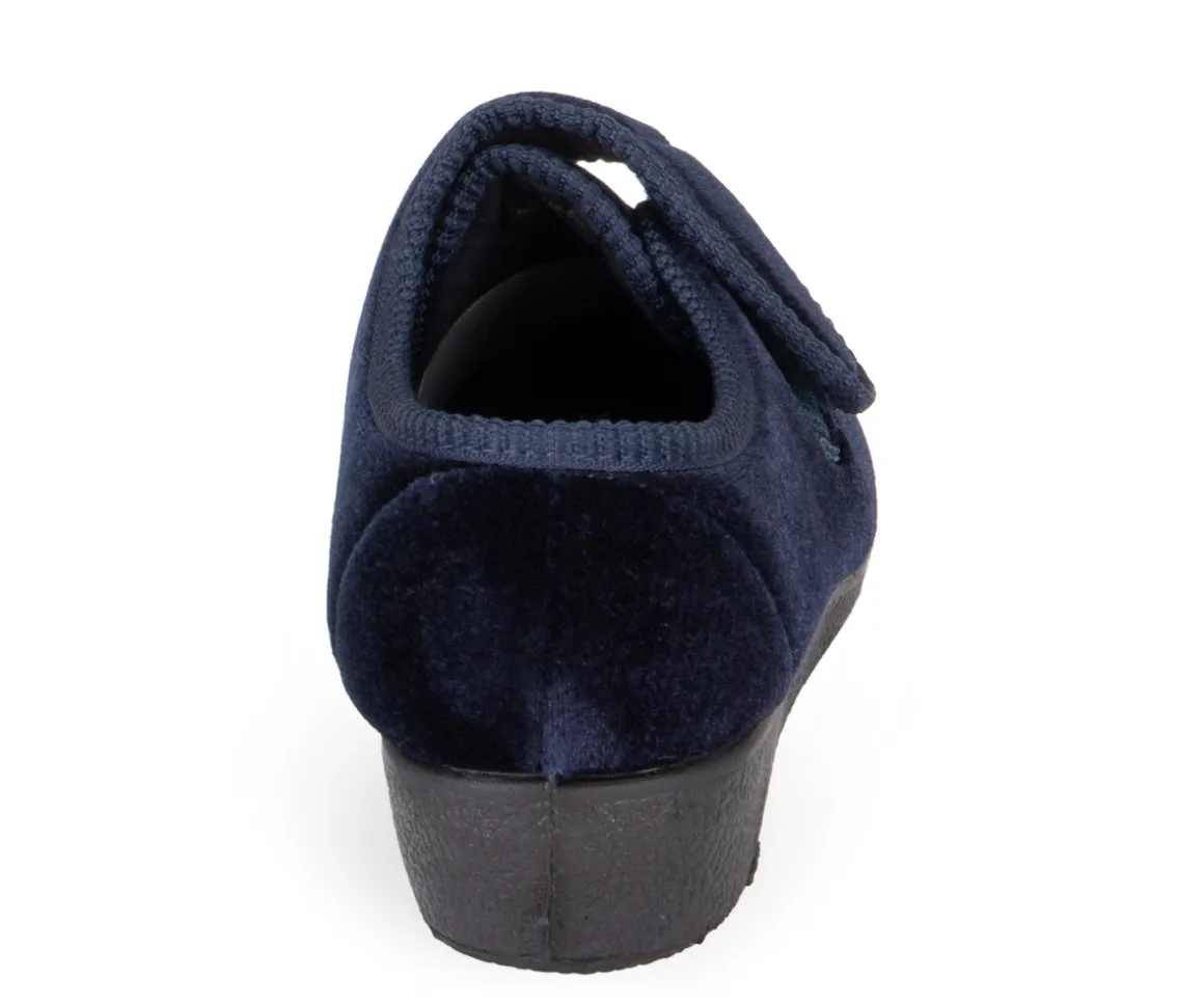 Les pantoufles pour femmes Comfortcare à fermeture velcro sont dotées d’un talon compensé, offrant ainsi un confort supplémentaire lors des moments de détente à la maison.