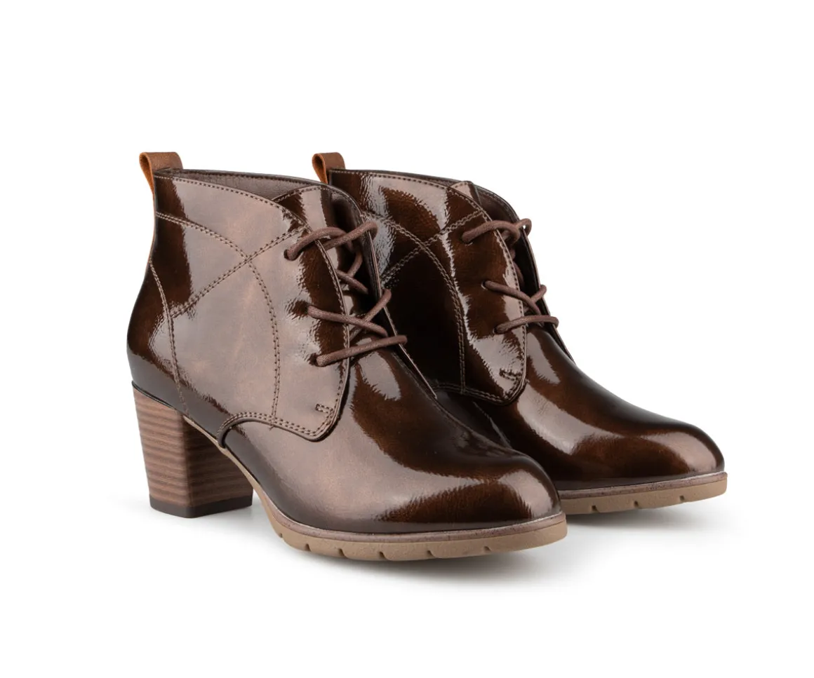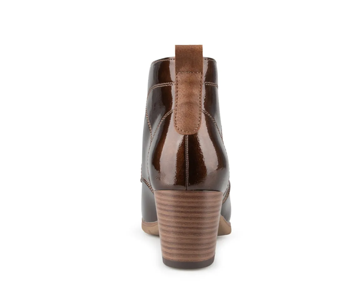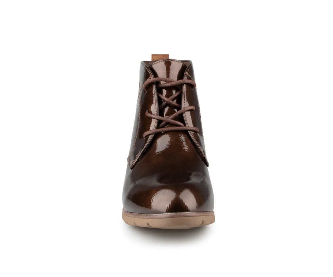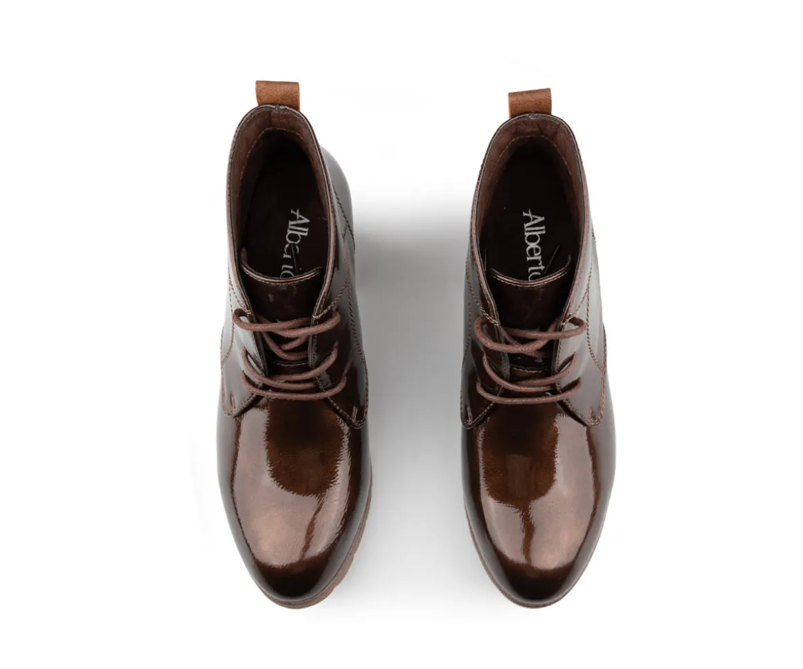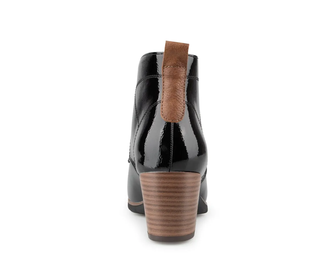 Ces bottillons non doublés Alberto pour femmes sont dotés d’un laçage et d’un talon carré de 2.25 pouces. L’empeigne en cuir synthétique vernis leur confère une allure élégante, tandis que la doublure en microfibre noire assure un confort optimal. La semelle intérieure en microfibre offre un bon amorti, et la semelle extérieure en TPR, ornée d’un talon imprimé, garantit durabilité et style.