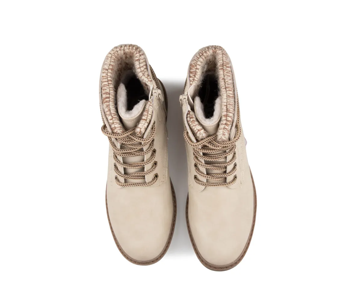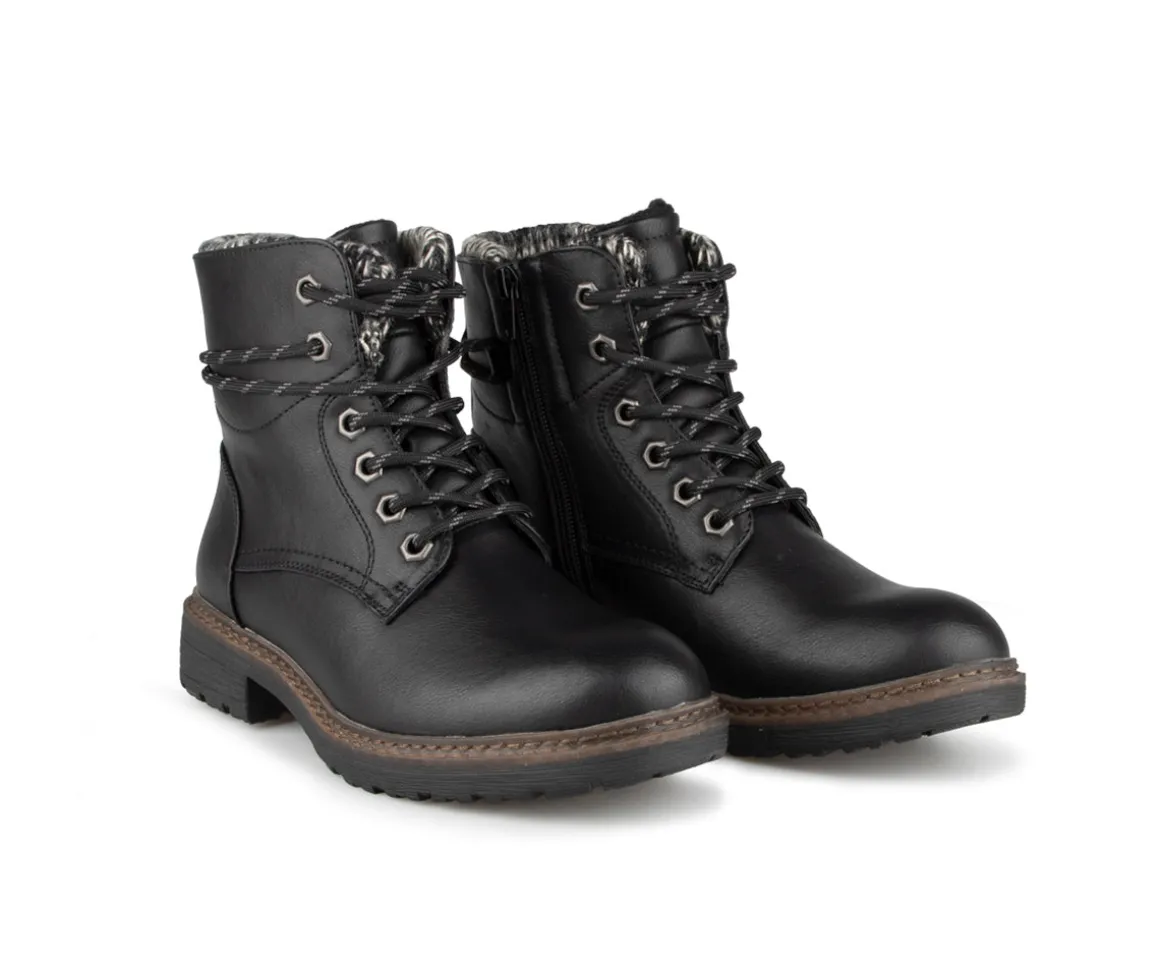 NonCes bottes courtes à talon plat Alberto pour femmes combinent style et chaleur pour affronter les journées froides avec confort. Elles sont dotées d’une empeigne en cuir synthétique et tricot, apportant une touche de modernité. La doublure en imitation de laine procure une sensation de douceur et de chaleur, tandis que la semelle intérieure en feutre amovible offre un excellent amortissement. La semelle extérieure en TPR garantit une bonne durabilité et adhérence sur diverses surfaces.