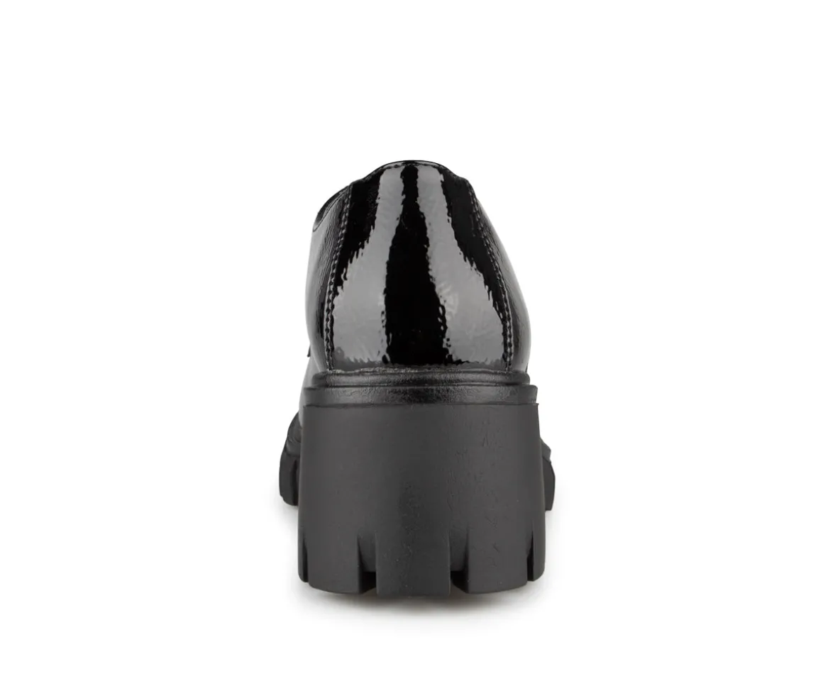 Souliers noirs Alberto pour femmes lacés en cuir synthétique verni avec un talon moyen ainsi qu’une semelle épaisse.