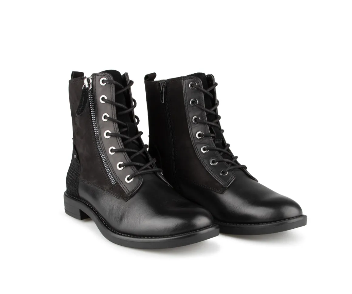 Ces bottillons Alberto pour femmes sont à lacets et munis d’une fermeture éclair intérieure pour plus de praticité. Avec un talon plat et une coupe courte, ils sont conçus pour un usage quotidien confortable. L’empeigne en cuir synthétique et la semelle extérieure en TPR garantissent durabilité et stabilité. La largeur B assure un ajustement confortable.