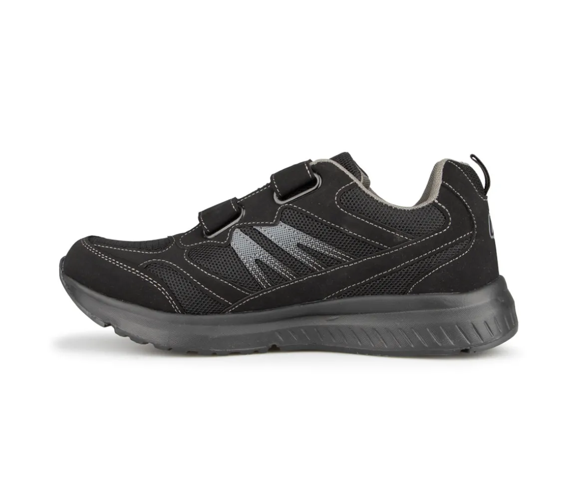 Ces chaussures Match pour hommes sont légères. Elles sont faites de tissu à mailles et munies de deux velcros pour un enfilage rapide.