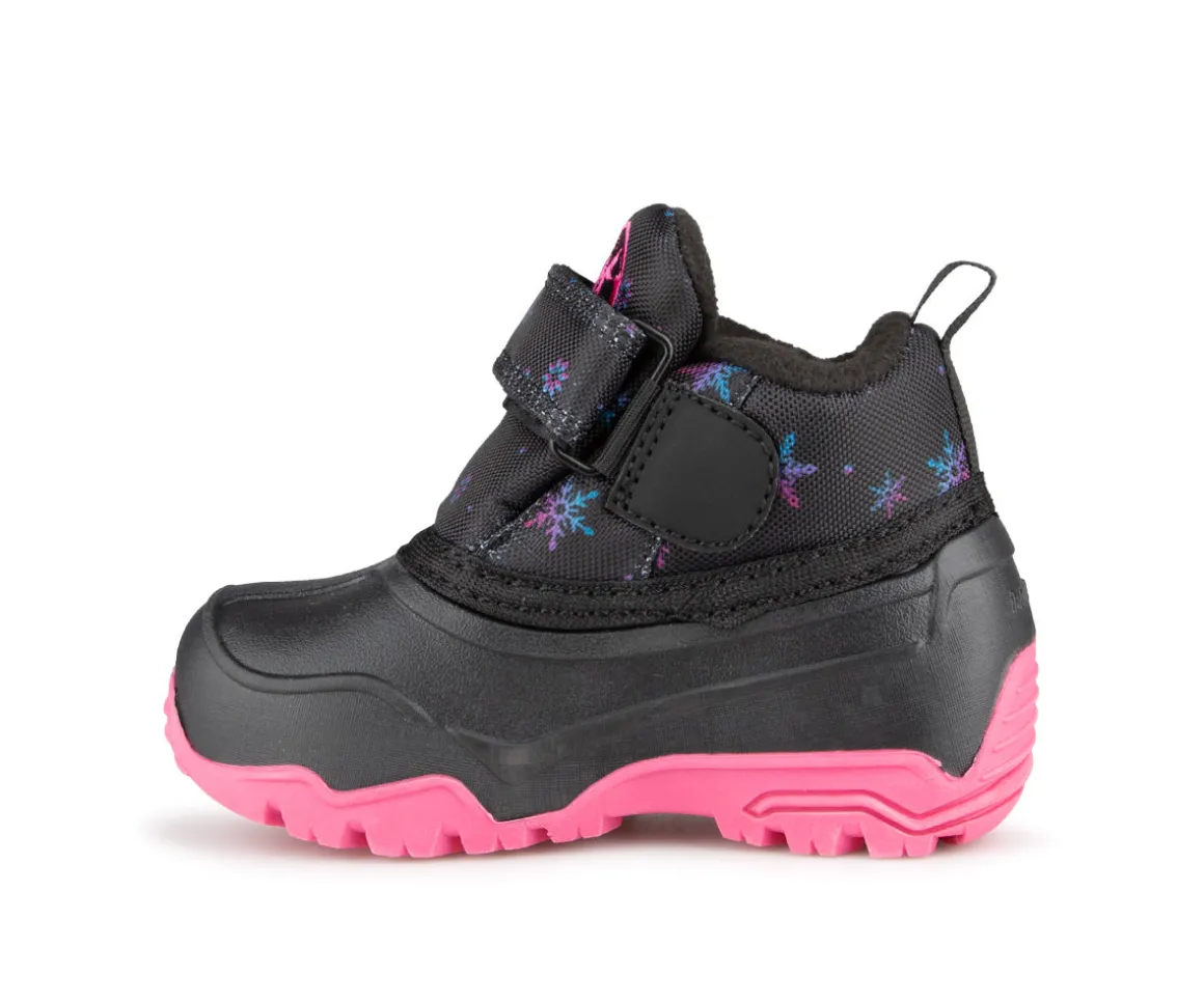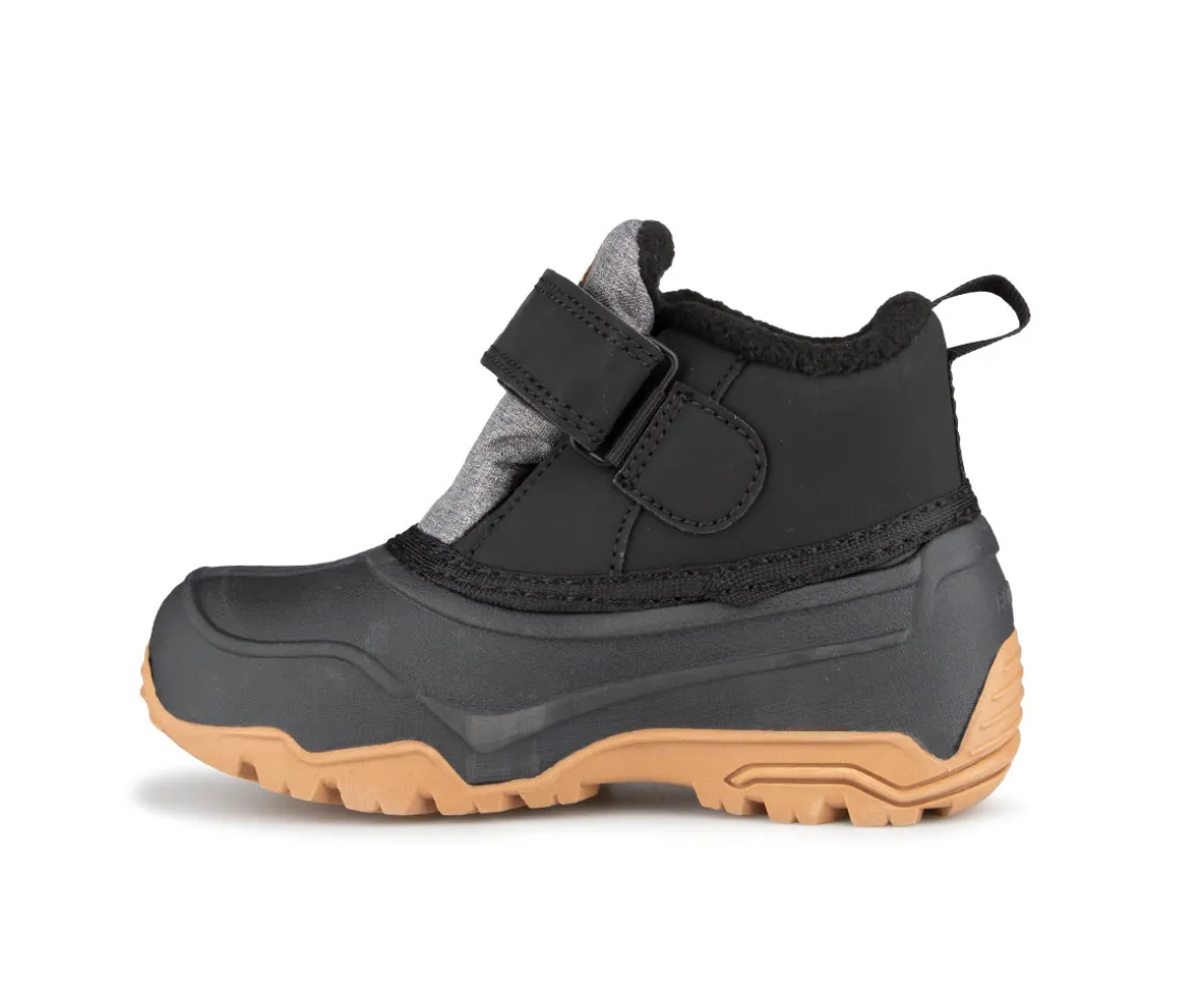 Bottillons pour petits enfants style duckies fait d’une tige en nylon et PU. Velcro à la cheville pour l’ajustement. Doublure en molleton de semelle de feutre 4mm.