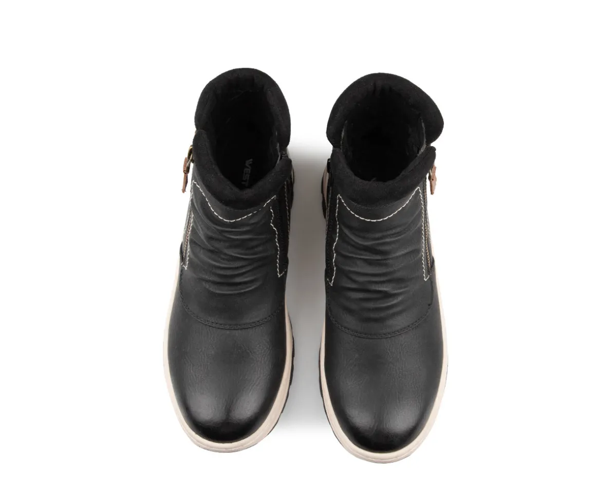 Les bottes doublées West Way pour femmes offrent une combinaison parfaite de confort et de style avec leur design pratique. Dotés d’une fermeture éclair intérieure, ces bottes courtes sont faciles à enfiler et à retirer. Le talon compensé ajoute une touche élégante tout en restant confortable. La doublure en imitation fourrure procure une chaleur agréable, idéale pour les journées plus fraîches. La semelle intérieure amovible en feutre offre un excellent amortissement, tandis que la semelle extérieure en TPR assure une adhérence durable.