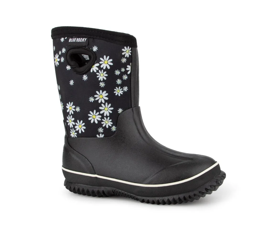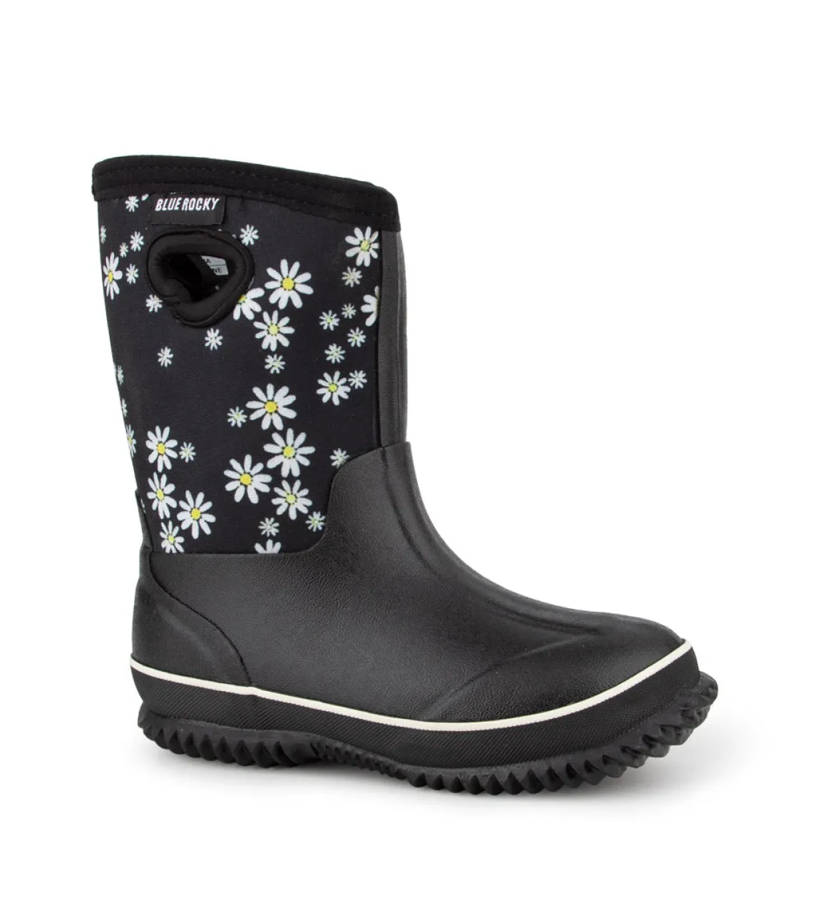 Botte de pluie Blue Rocky pour enfant en néoprène facile à enfiler et à retirer. Avec leurs motifs colorés, elles apportent une touche de fantaisie à chaque saut dans les flaques d’eau.