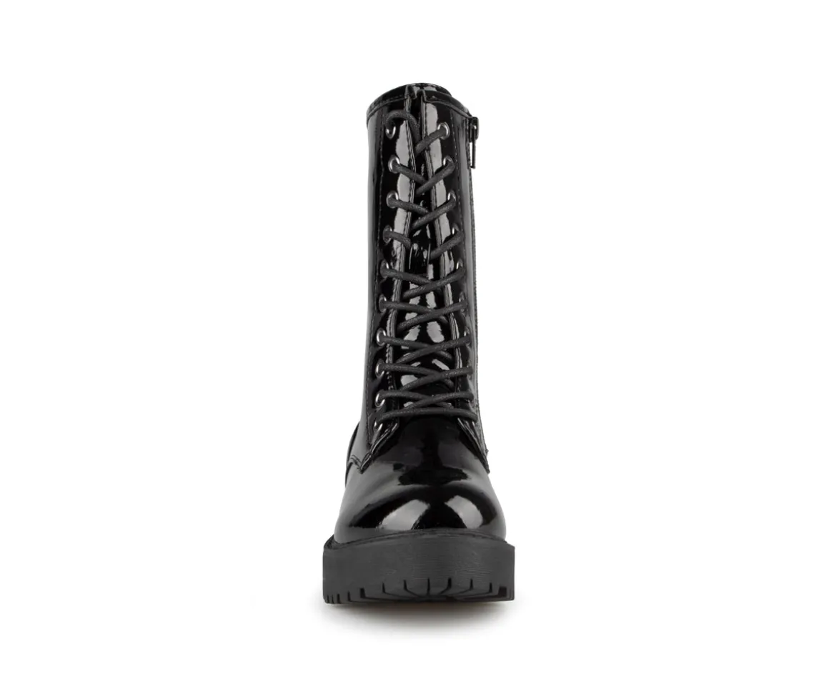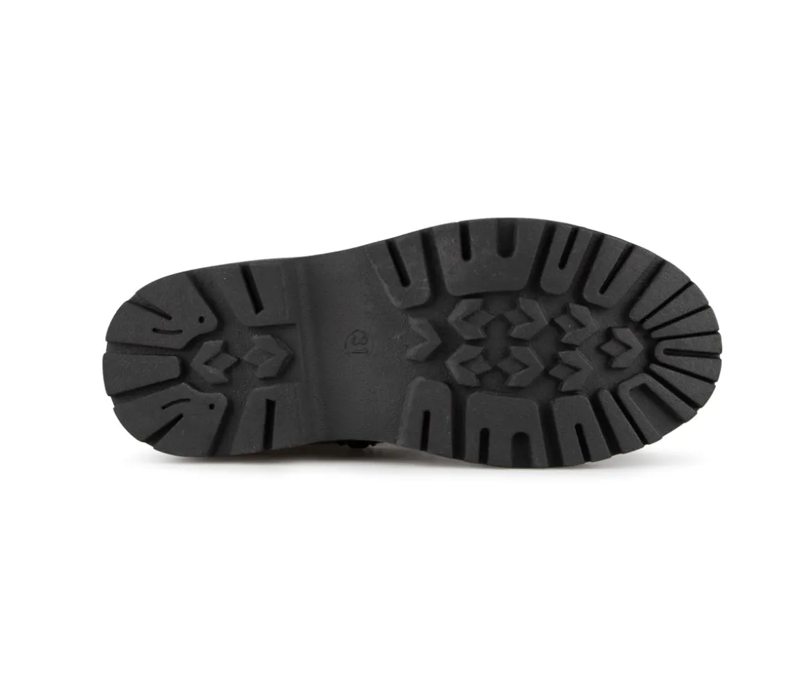 Bottillons mi-mollets Alberto pour filles avec empeigne en cuir synthétique verni et doublure en imitation de fourrure douce. La semelle intérieure est en feutre noir et la semelle extérieure est en TPR, offrant confort et durabilité. Ces bottillons élégants et pratiques sont parfaits pour garder les pieds de votre enfant au chaud et au sec pendant les mois froids.