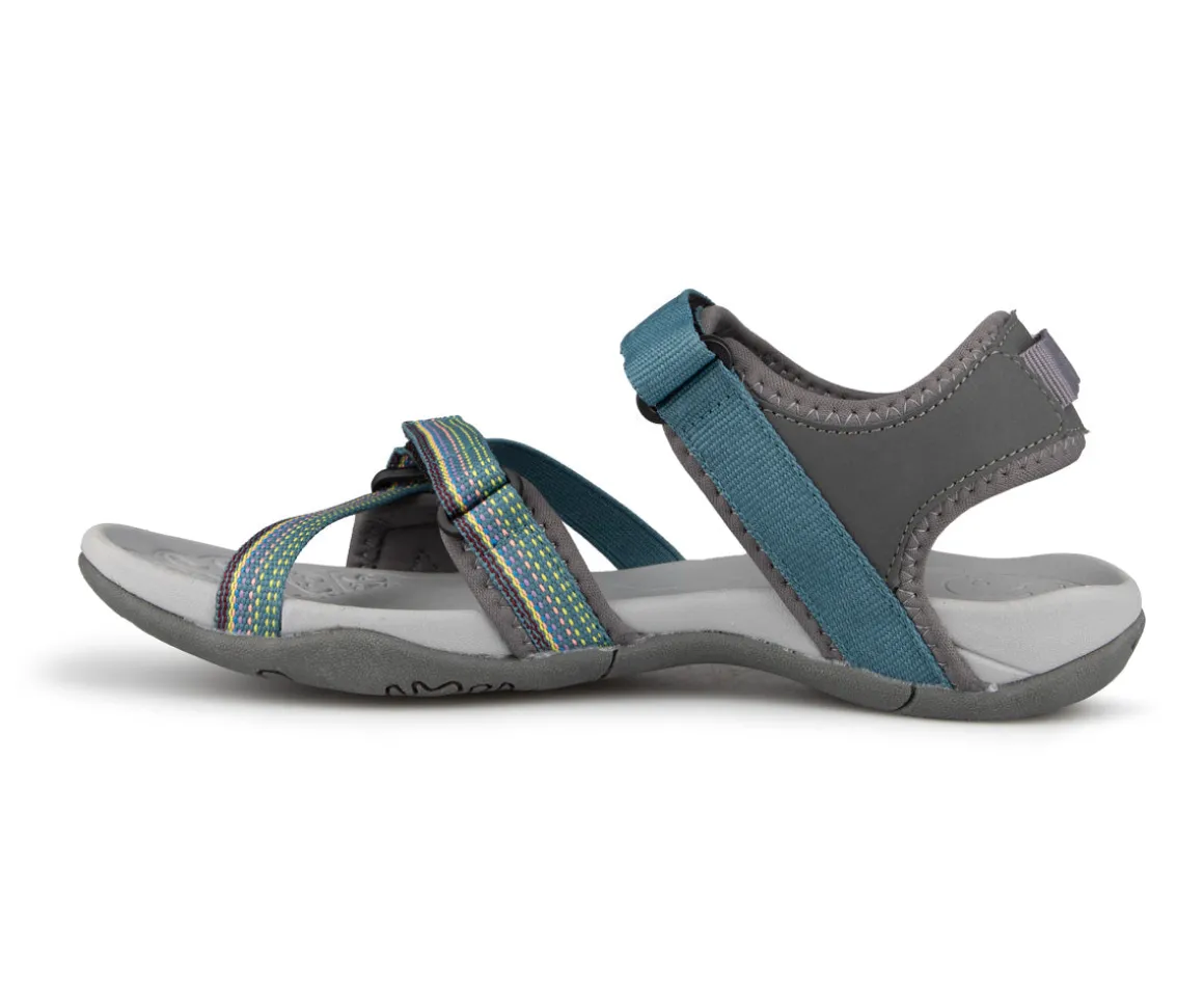 Sandales Duty Nine pour femmes avec deux velcros sur le dessus. Elle est parfaitement conçue pour la marche, mais aussi pour un usage quotidien. Disponible en deux couleurs (bleu ou noir).
