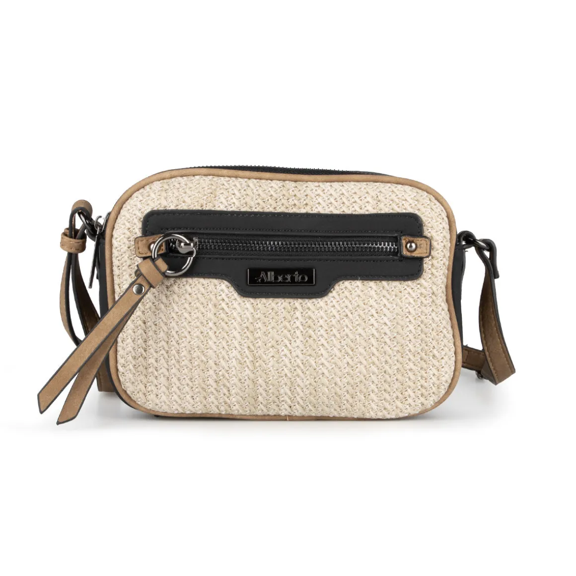 Le petit sac à main Alberto combine élégance et praticité. Fabriqué en cuir synthétique et paille, ce sac est léger et tendance, parfait pour un usage quotidien. Il offre une organisation optimale grâce à ses deux compartiments principaux et ses compartiments fermés avec fermeture éclair pour sécuriser vos affaires.