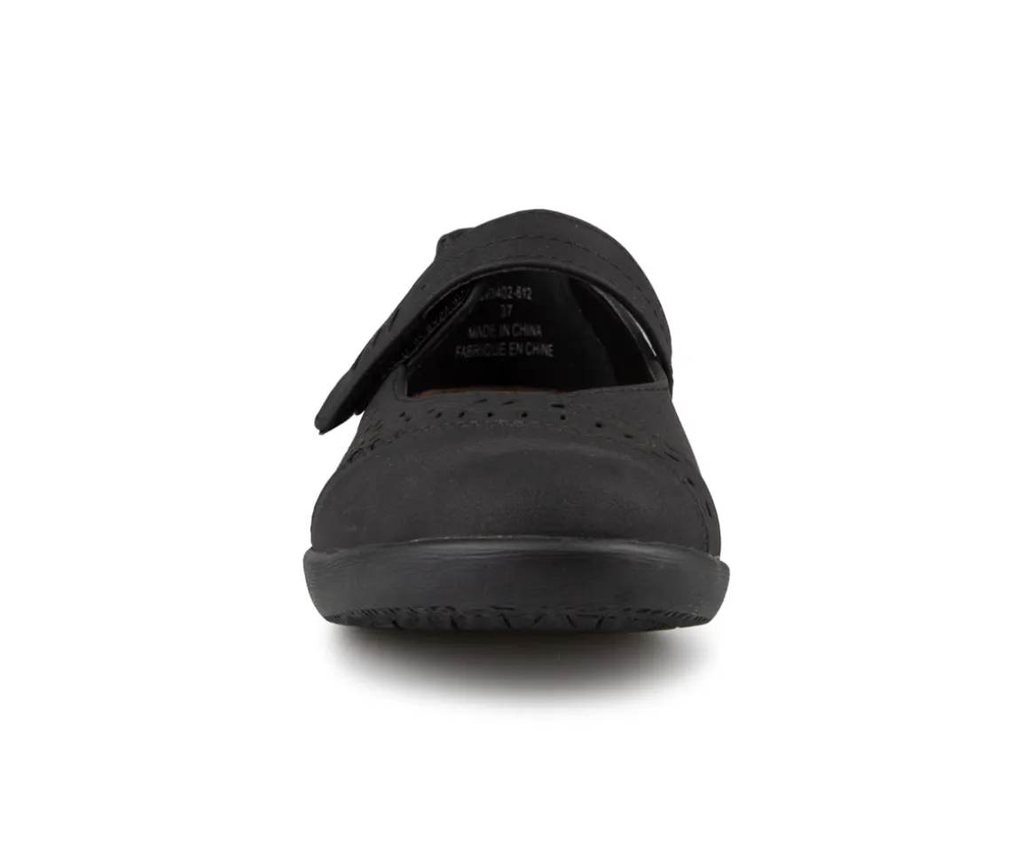 Ces souliers Marie-Jane Ultime Confort pour femmes en cuir synthétique sont équipés d’une fermeture à velcro, offrant praticité et ajustement facile. La semelle intérieure en microfibre, amovible et dotée d’un bon amorti, assure un confort optimal à chaque pas. Une combinaison parfaite de style et de bien-être pour accompagner votre quotidien.