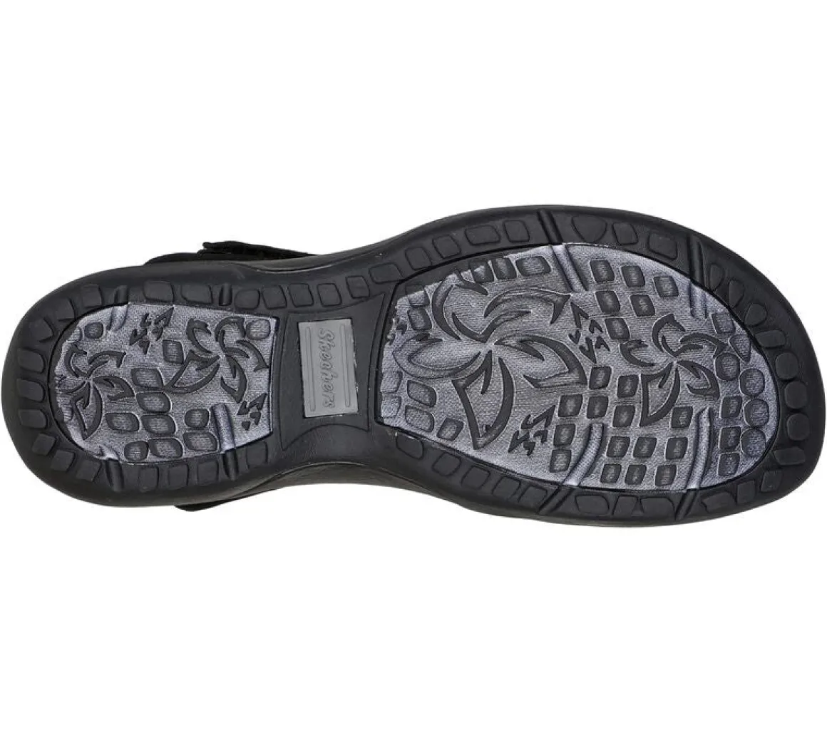 Faites votre style et votre confort avec la sandale SKECHERS Reggae Slim – Takes Two. Tige en similicuir lisse et tissu extensible doux dans une sandale à lanières de sport confortable et décontractée avec bride de talon réglable. Semelle intérieure en mousse mémoire.