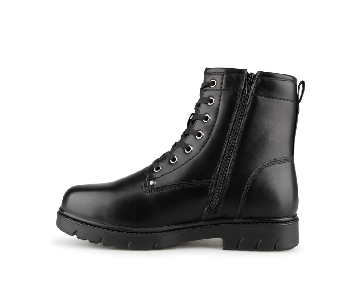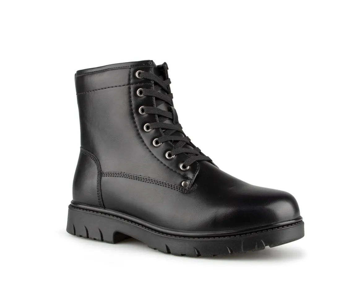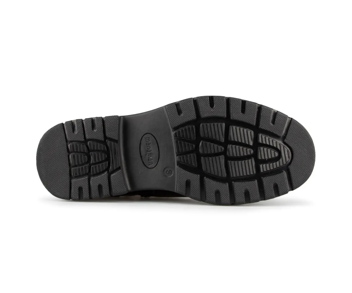 Les bottillons Manathan pour hommes allient robustesse et confort pour affronter les rigueurs de l’hiver. Fabriqués en cuir synthétique, ils sont dotés d’une doublure en fourrure de 800G qui assure une bonne isolation thermique. La fermeture éclair intérieure facilite l’enfilage, et la semelle intérieure amovible en feutre avec fibre WP offre un confort supplémentaire et une protection contre l’humidité. La semelle extérieure en caoutchouc garantit une adhérence solide sur les surfaces glacées.