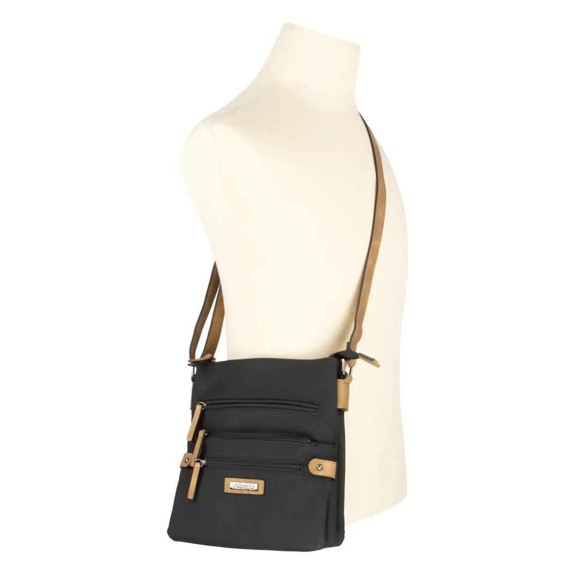 Le sac à bandoulière Alberto pour femme combine un design moderne et une organisation optimale. Confectionné en cuir synthétique avec une doublure en textile, il offre plusieurs compartiments avec fermeture éclair pour garder vos essentiels bien rangés. Sa bandoulière ajustable assure un confort optimal tout au long de la journée.