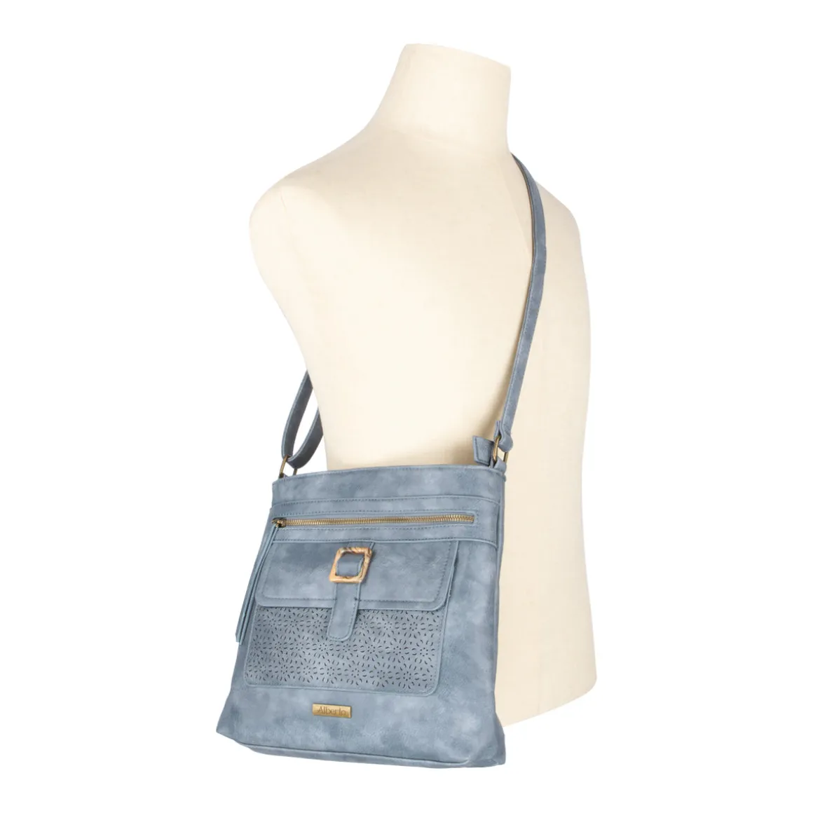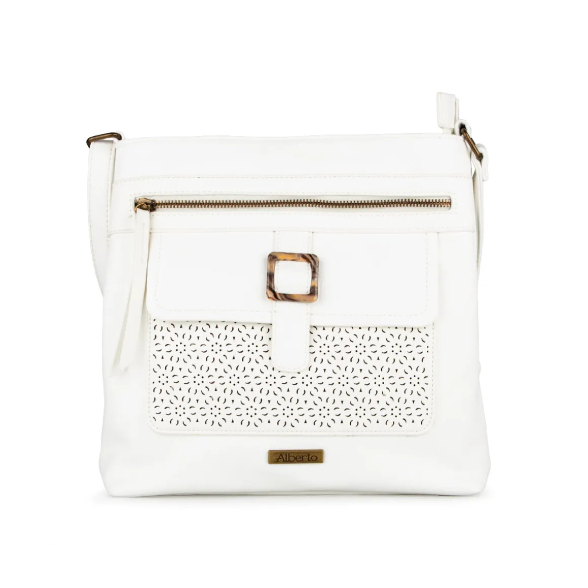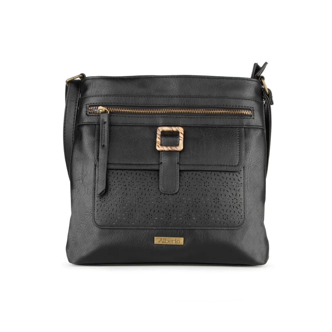 Le sac à main Alberto allie un style intemporel à une grande praticité pour accompagner vos journées. Doté d’une bandoulière ajustable, il offre plusieurs compartiments sécurisés par fermeture éclair pour une organisation optimale. Sa doublure intérieure en tissu imprimé et sa texture perforée sur le devant ajoutent une touche de raffinement. Fabriqué en cuir synthétique, ce sac mesure 10 po de hauteur et 12 po de longueur.