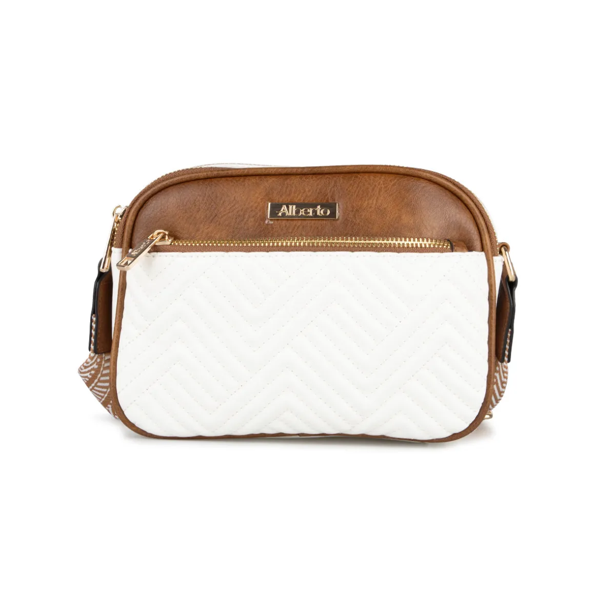 Le sac à bandoulière Alberto est l’accessoire idéal pour vos sorties de magasinage. Avec son joli format compact, il est fabriqué en cuir synthétique et une doublure en tissu imprimé pour plus de raffinement. Ses deux compartiments principaux sécurisés par une fermeture éclair et sa bandoulière ajustable offrent confort et praticité.