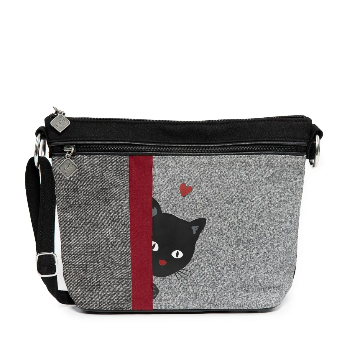 Ce sac à bandoulière Jak’s pour femmes, agrémenté d’une illustration ludique de chat, apporte une touche artistique et originale à vos tenues quotidiennes. Il dispose d’une bandoulière ajustable pour un confort optimal et d’une attache-clés pratique. Facile à entretenir, ce sac est lavable à la machine. Dimensions : 27 × 20 × 8 cm.