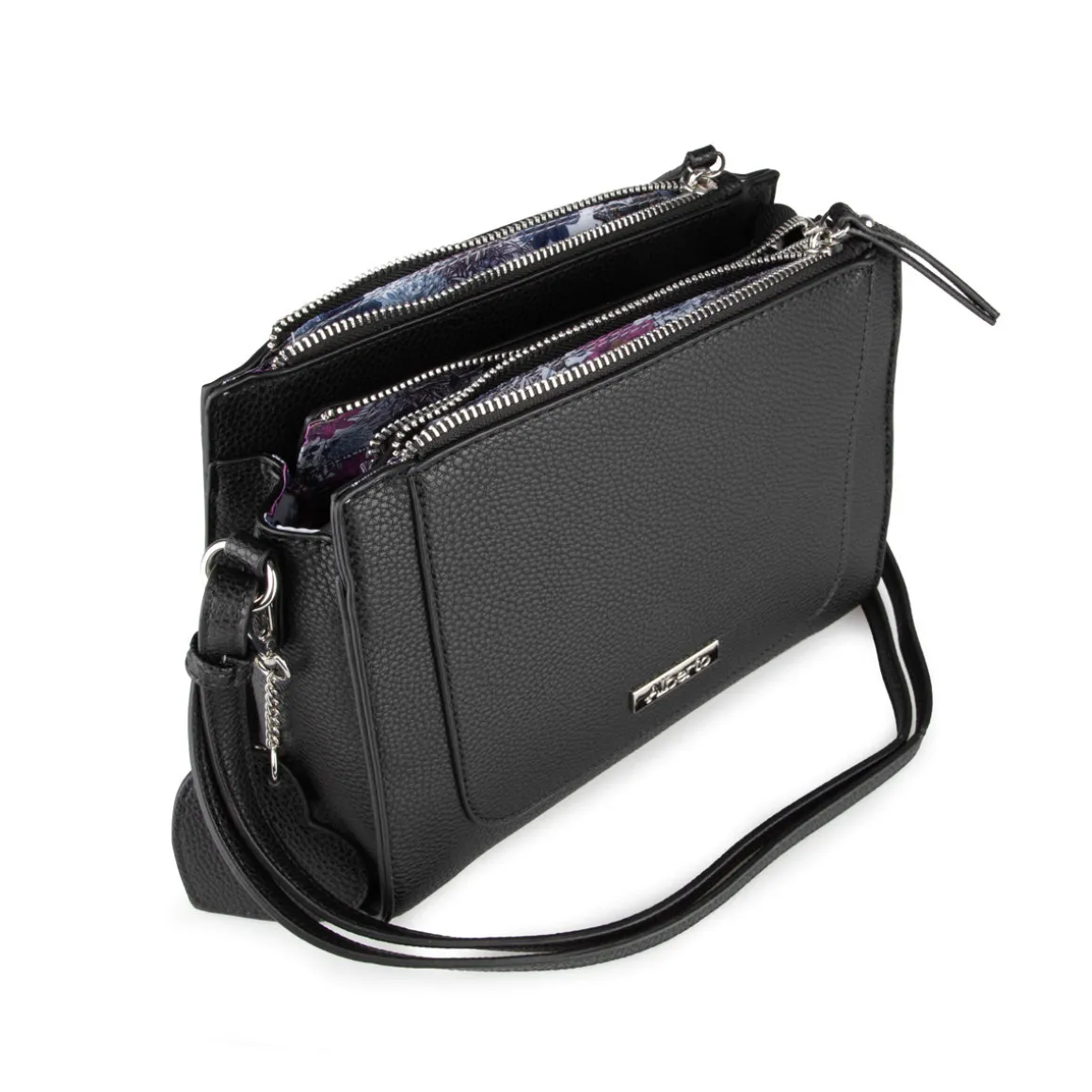 Le sac à main Alberto se distingue par son joli pendentif décoratif et son format pratique, parfait pour accompagner votre quotidien. Doté de trois compartiments sécurisés par fermeture éclair et d’une bandoulière ajustable, il offre un rangement optimal et un confort au quotidien.