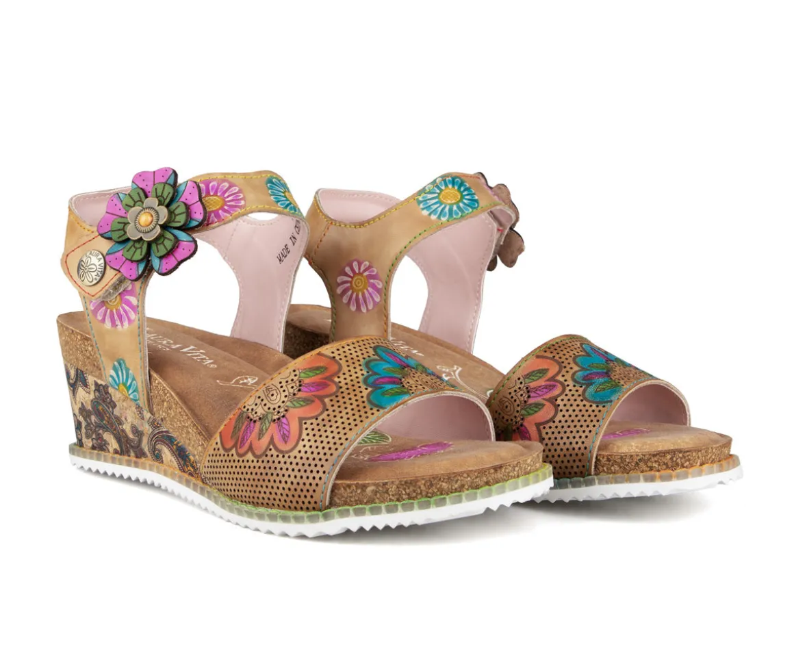 Apportez style et confort à vos journées estivales avec les sandales Laura Vita pour femmes. Fabriquées en cuir imprimé fleurs, elles offrent un talon compensé stable et une fermeture velcro pratique pour un ajustement facile et confortable à chaque pas.