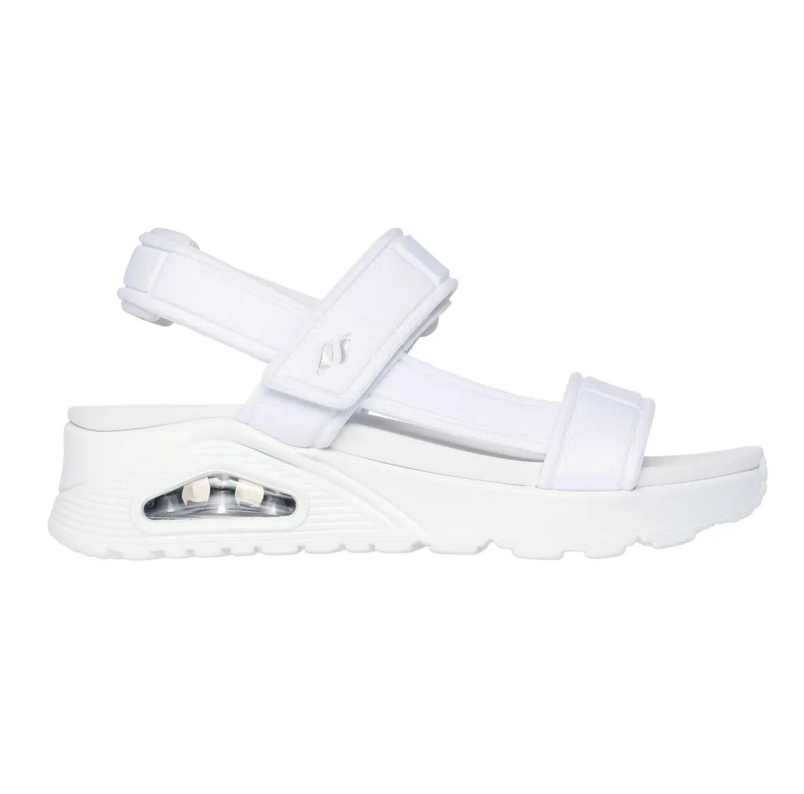Cette sandale à sangle en T reprend la silhouette emblématique Uno avec une touche estivale. Conçue avec une empeigne en matériau synthétique durable et une sangle arrière réglable, elle assure un bon maintien et un ajustement parfait. L’assise plantaire coussinée Yoga Foam® et la semelle intercalaire à coussin d’air visible Skech-Air® offrent un confort remarquable à chaque pas. 100 % végétalienne, cette sandale est aussi éthique que stylée.
