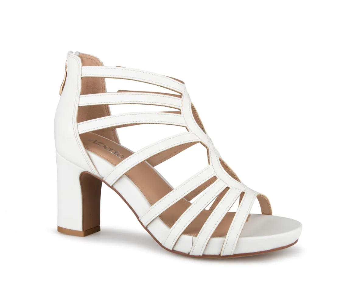 Ces sandales Alberto pour femmes en cuir synthétique sont munies d’une fermeture éclair arrière et d’un talon droit. Parfaites pour des événements chics, ces souliers allient confort et style, assurant une démarche gracieuse et distinguée.