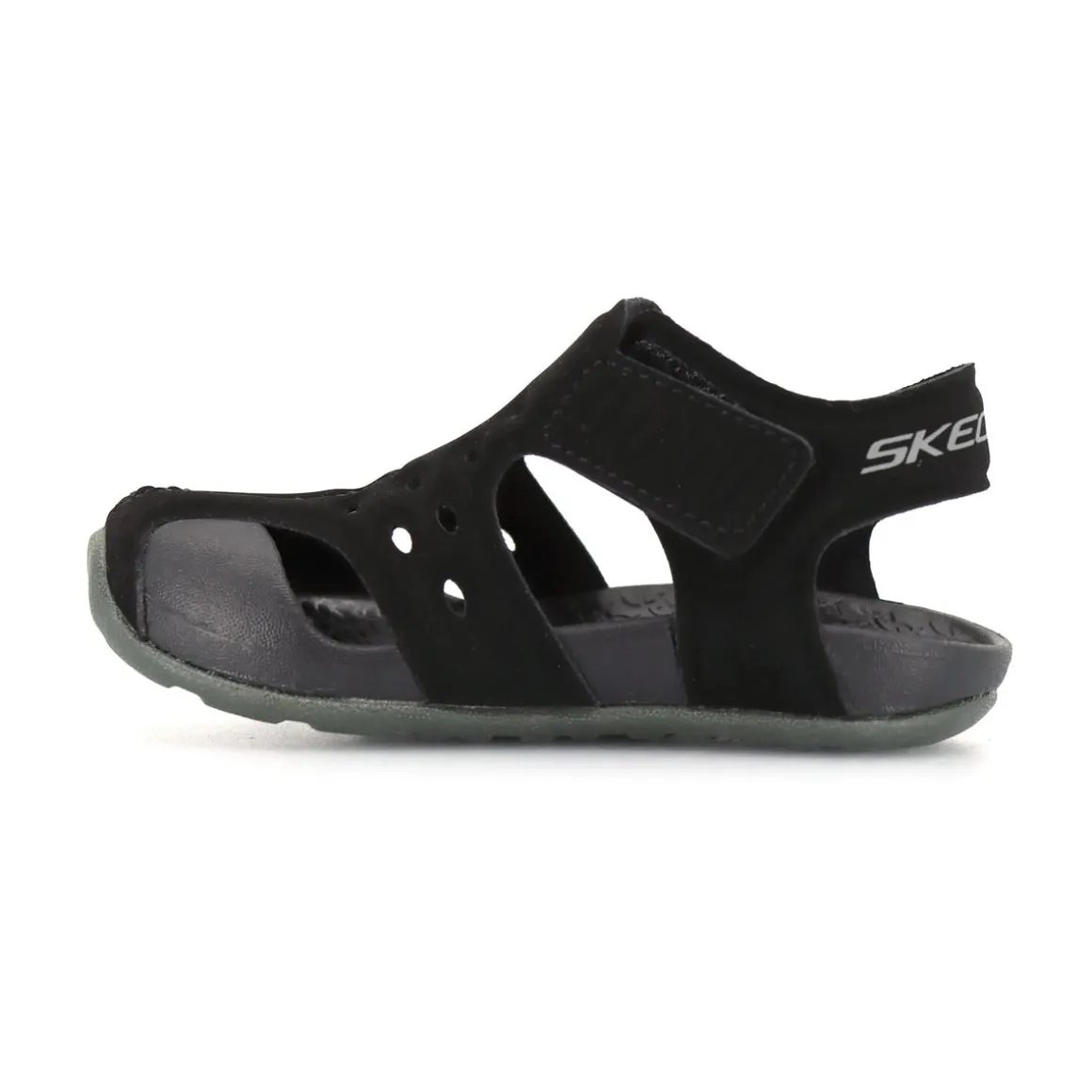 Sandales pour enfants Skechers à bout fermé avec fermeture à velcro. Semelle confortable et absorbant les chocs.