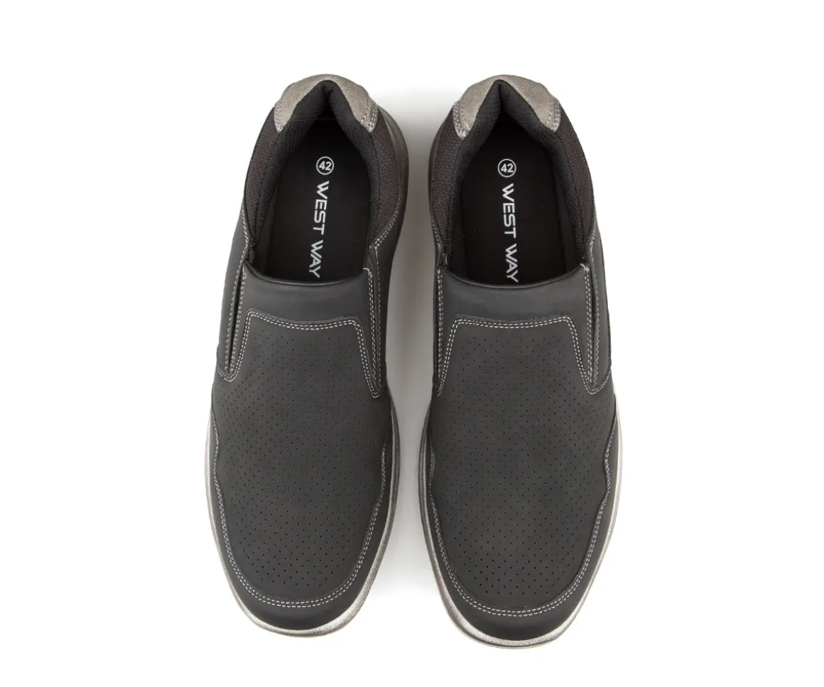 Simples et confortables, les souliers West Way pour hommes à enfiler sont idéals pour le quotidien. Fabriqués en cuir synthétique facile d’entretien, ils sont doublés en tissu maillé respirant. Leur bon amorti et leur semelle extérieure en TPR assurent stabilité et confort tout au long de la journée.