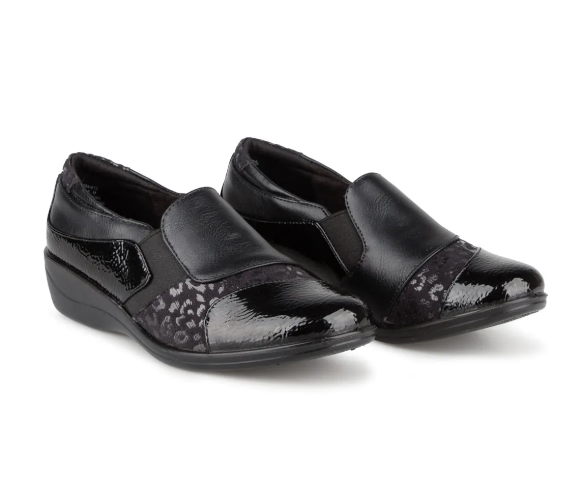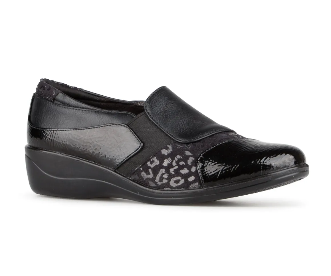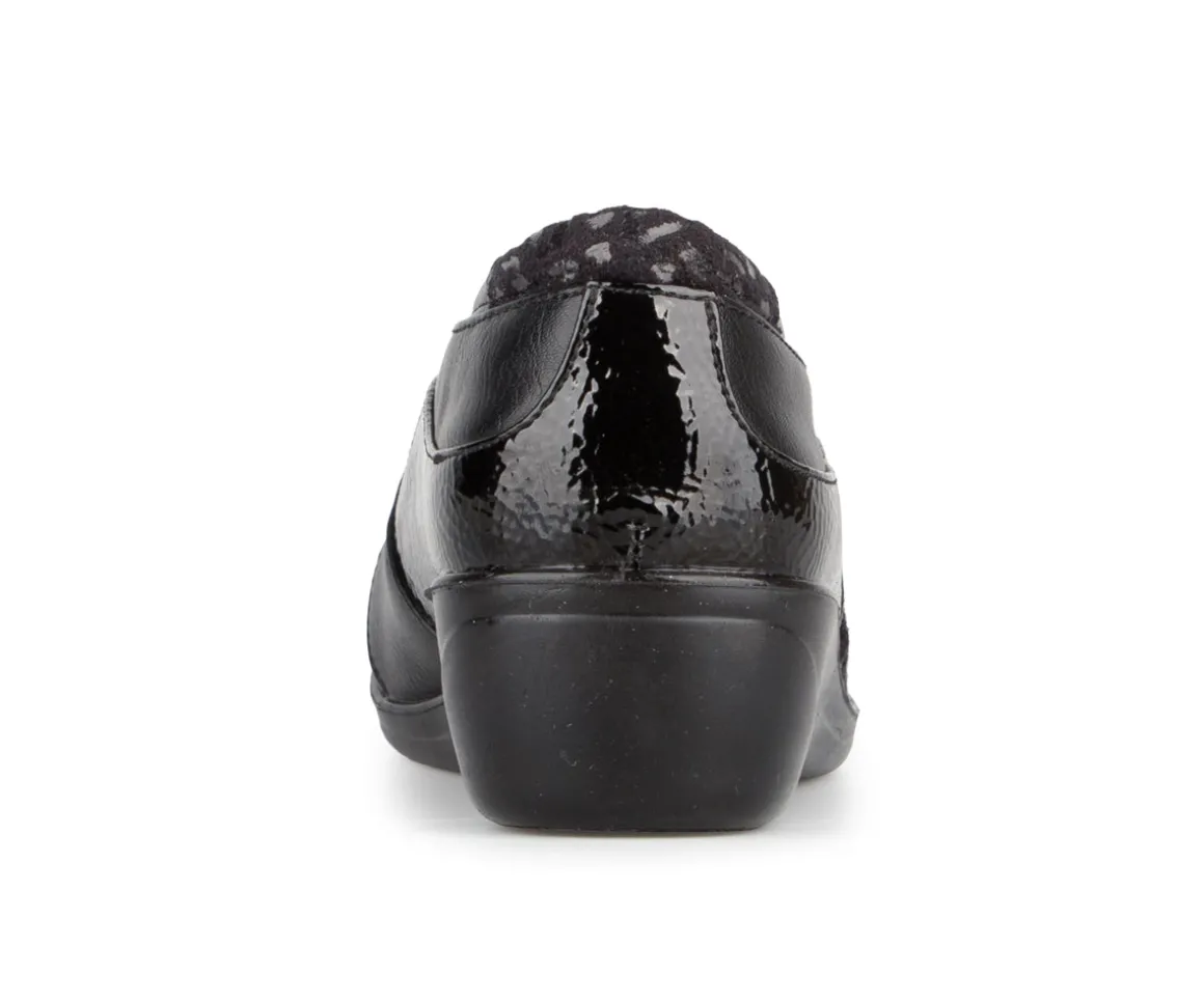 Conçus pour allier style raffiné et confort au quotidien, ces souliers à talon compensé sont fabriqués en cuir synthétique verni et imprimé. Leur doublure en microfibre douce et leur semelle intérieure amovible procurent un excellent soutien, tandis que la semelle extérieure en PU assure légèreté et flexibilité. Un choix idéal pour celles qui recherchent un soulier chic, confortable et facile à porter.