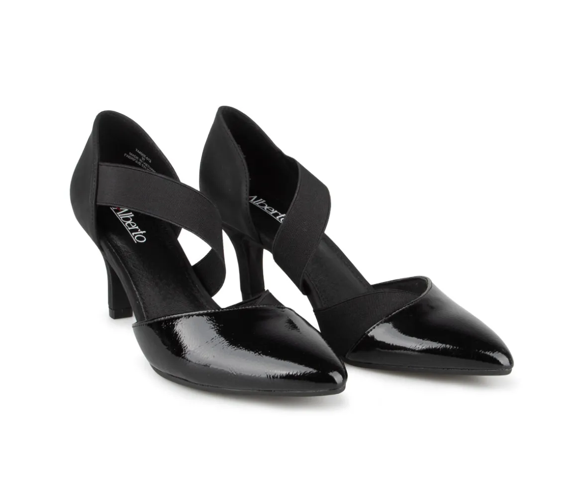Ces souliers à talon haut Alberto pour femme marient sophistication et aisance avec leur design en cuir synthétique et cuir synthétique verni. Leur gance élastique sur le dessus assure un ajustement confortable et un bon maintien. La semelle intérieure en PU procure un confort optimal, tandis que la semelle extérieure en TPR avec talon aiguille recouvert de 2,5 pouces garantit une démarche stable et élégante. Parfaits pour rehausser vos tenues avec une touche de chic intemporel.
