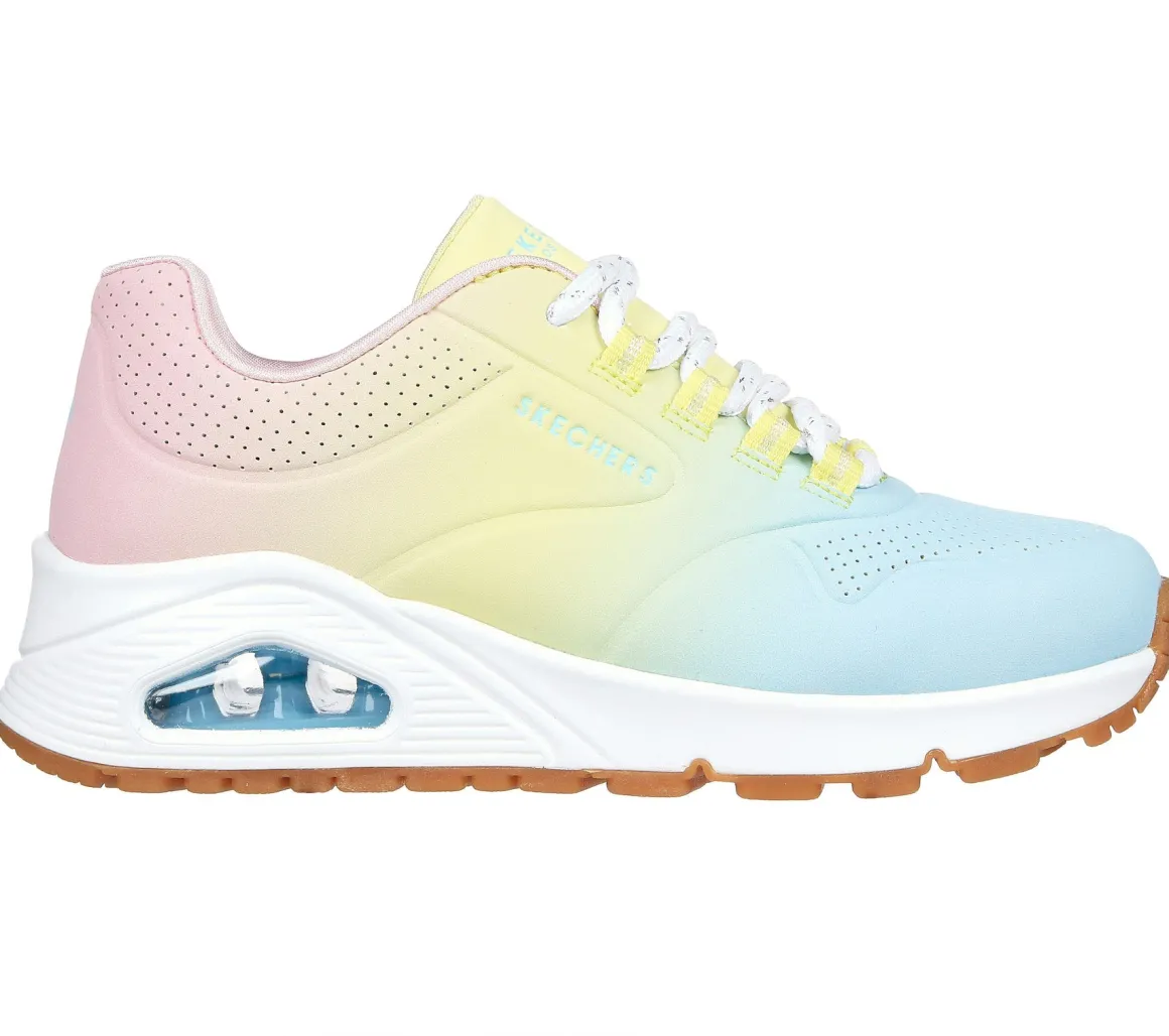 Chaussures lacées Skechers pour fille avec de belles couleurs vives. Elle présente une tige en cuir synthétique perforé ombré et une semelle intérieure Skechers Memory Foam® coussinée.
