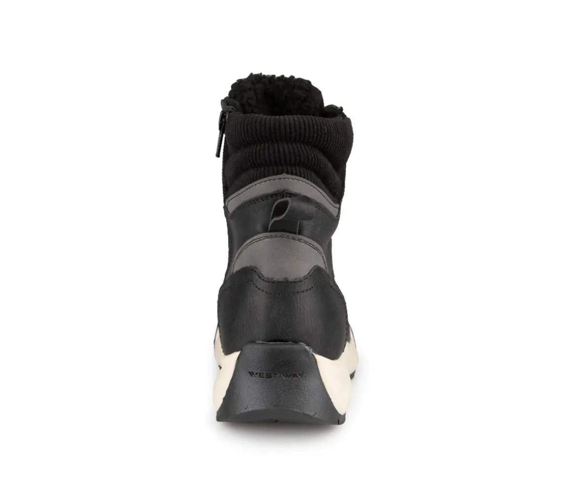 Affirmez votre style avec le bottillon d’hiver lacé Zofia par West Way pour femmes. Son talon de 1,5 po et l’association audacieuse de cuir synthétique et de velours côtelé ajoutent une sophistication distinctive, complétée par une fermeture éclair intérieure pour une touche de modernité. Redéfinissez votre élégance hivernale avec assurance.